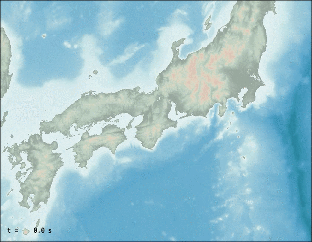 差分法による地震波動伝播数値シミュレーション手法の概略を紹介したのち,オープンソースソフトウェアOpenSWPCとコンピュータクラスタ(スーパーコンピュータ)を用いた実践的な数値シミュレーションについて,実演および実習を通じて学びます.この講習会では,以下のような現実的な3次元的に不均質な日本列島構造下における地震波動伝播数値シミュレーションを実行できるようになるとともに,そのパラメタ設定法の基礎を理解し,今後の研究活動に活用できるようになることを目指します.