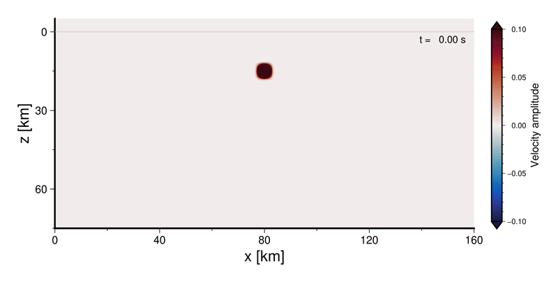 地震学における波動方程式の半直感的な紹介からはじめ,差分法を用いた地震波の数値シミュレーションを,基本概念から座学+クラウド上のプログラミング環境を用いたハンズオン形式を用いて学びます.以下の動画のような簡単な地震波伝播数値シミュレーションの原理を理解し,また実行できるようになることが目標です.